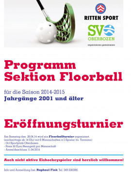 am 26. April findet zum dritten mal das Floorballturnier des SV Oberbozen statt.